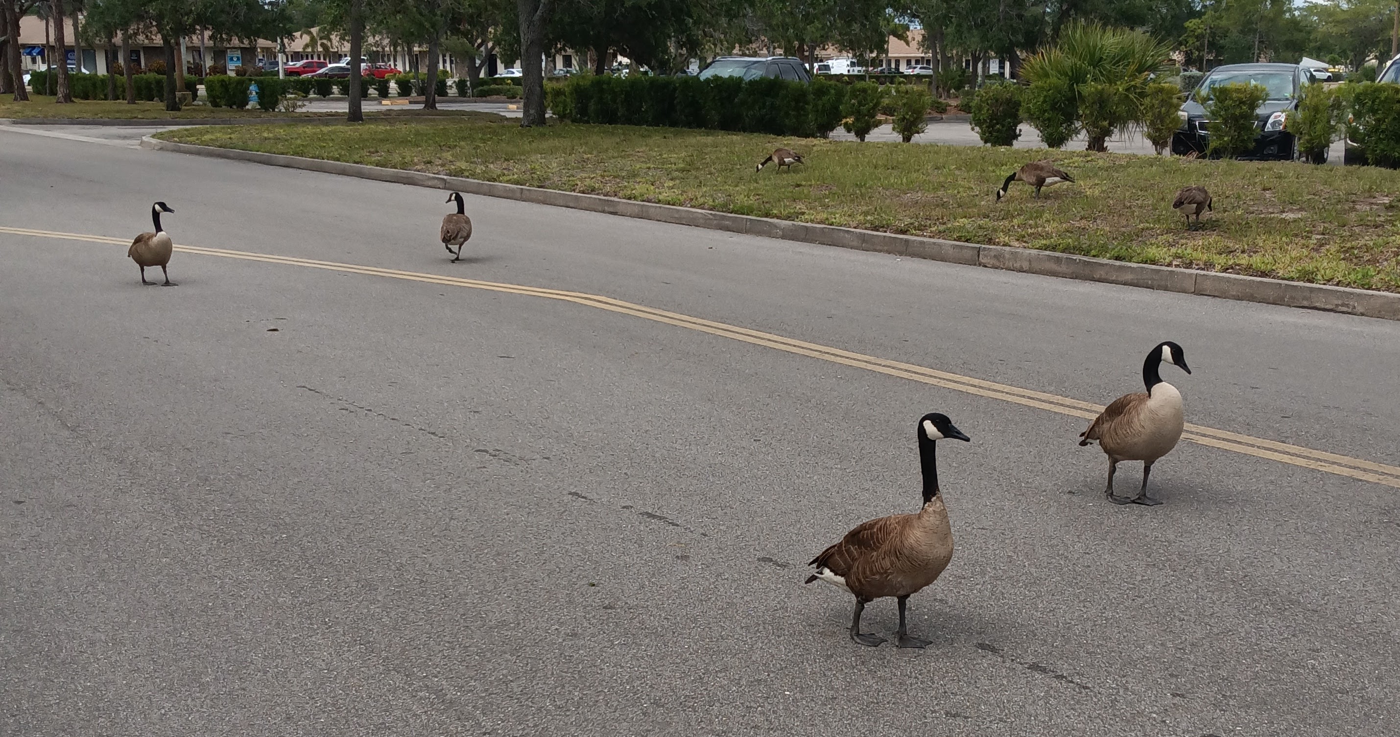 but seeing a flock of canadian geese strutting down a florida street is a little rarer, even with 5 million or so of them flying here and there every day!